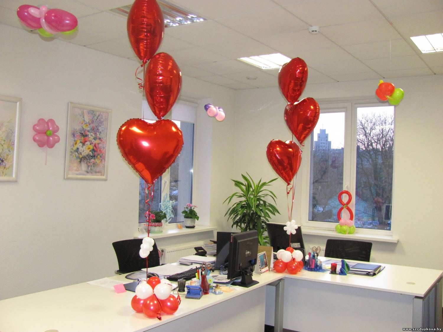 1 фонтан из 3 фольгированных сердец с основанием