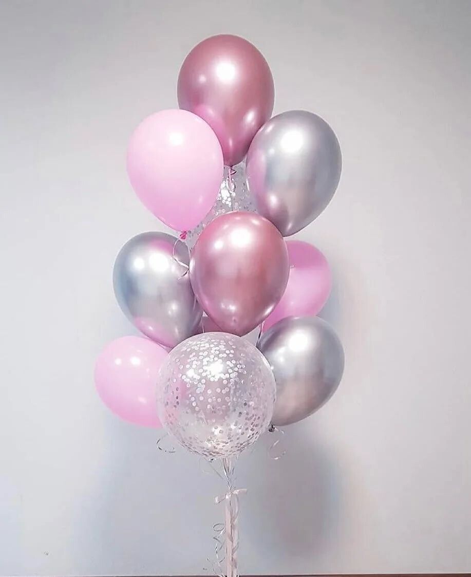6 шаров хром розового и серебристого цветов