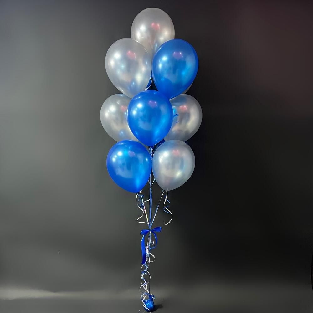 13 серебряных и синих перламутровых шаров