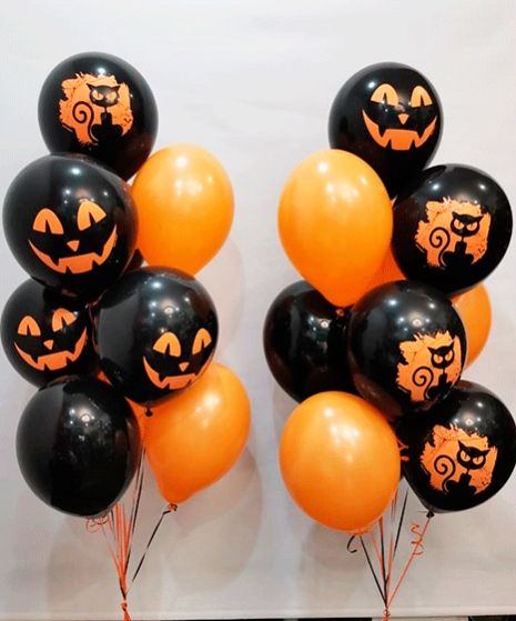 композиция в тематике Halloween, хеллоуин с яркими принтами с тыквой и кошечкой