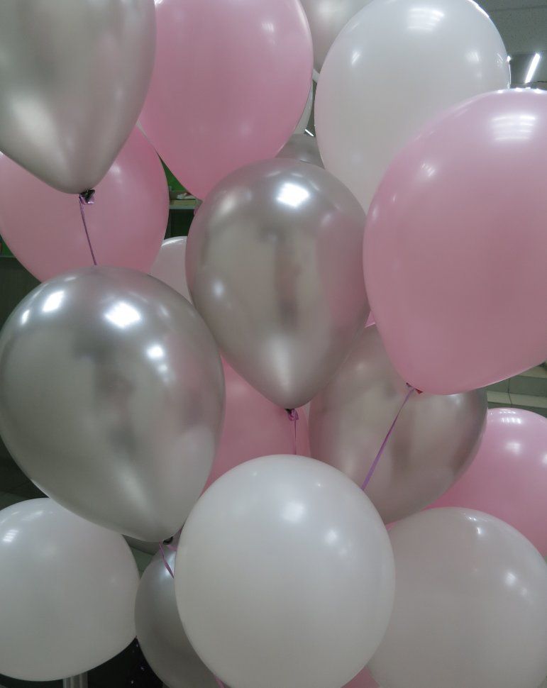 Набор гелиевых шаров нежно-розовых, серебряных, белых
