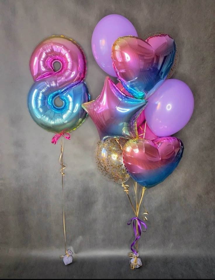 - 5 розовых и среневых шаров