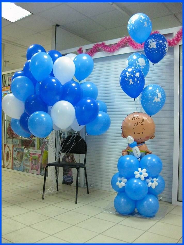 стойка из воздушных шаров с малышом (или малышкой) и шариками
