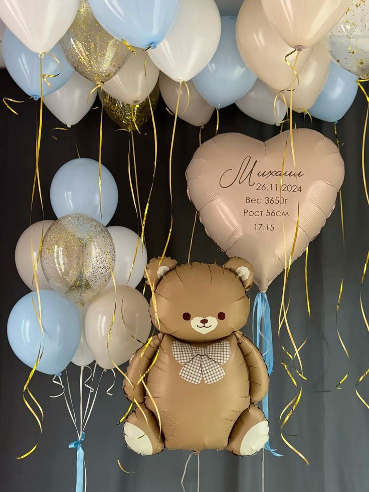 - 15 шаров на потолок с конфетти, голубые, белые, кремовые