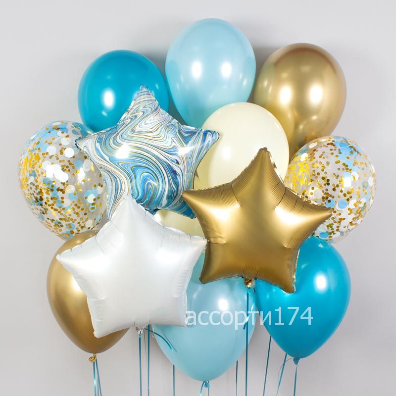 - 8 шаров золотые хром, синие, голубые, светло-желтые