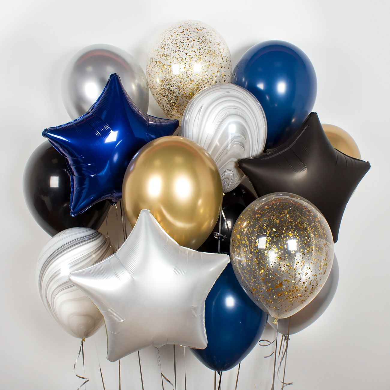 - 10 шаров темно-синие, золотые, серебряные, черные