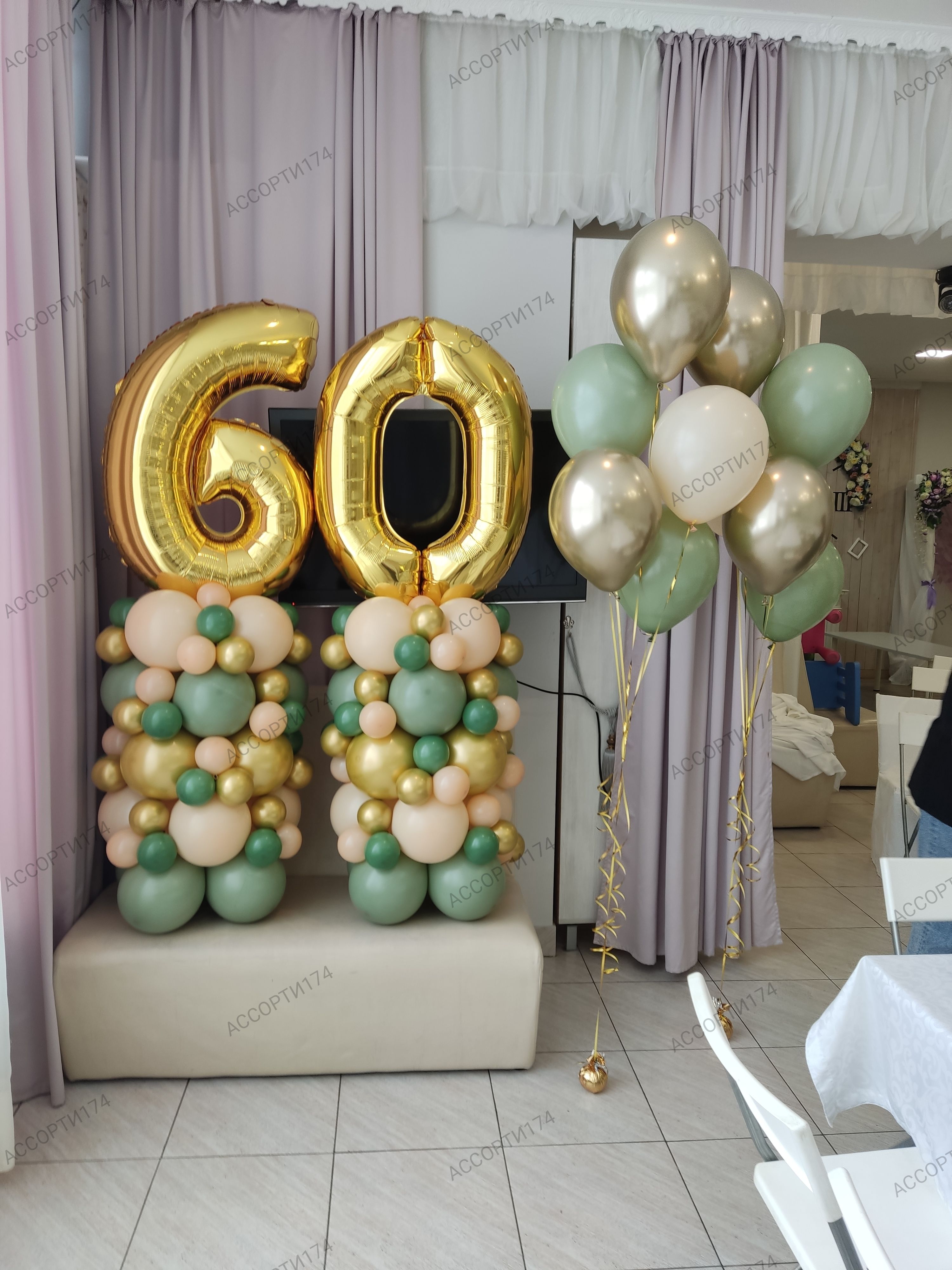 2 фонтана из 5 шаров (золотых хром, оливковых, белых)