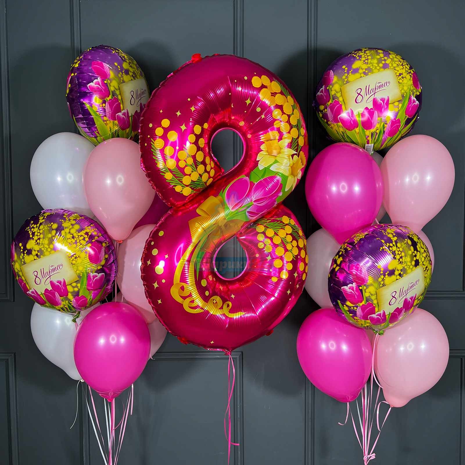 фонтан (2 шт.) 8 однотонных шара, 2 фольгированных шара "8 Марта".