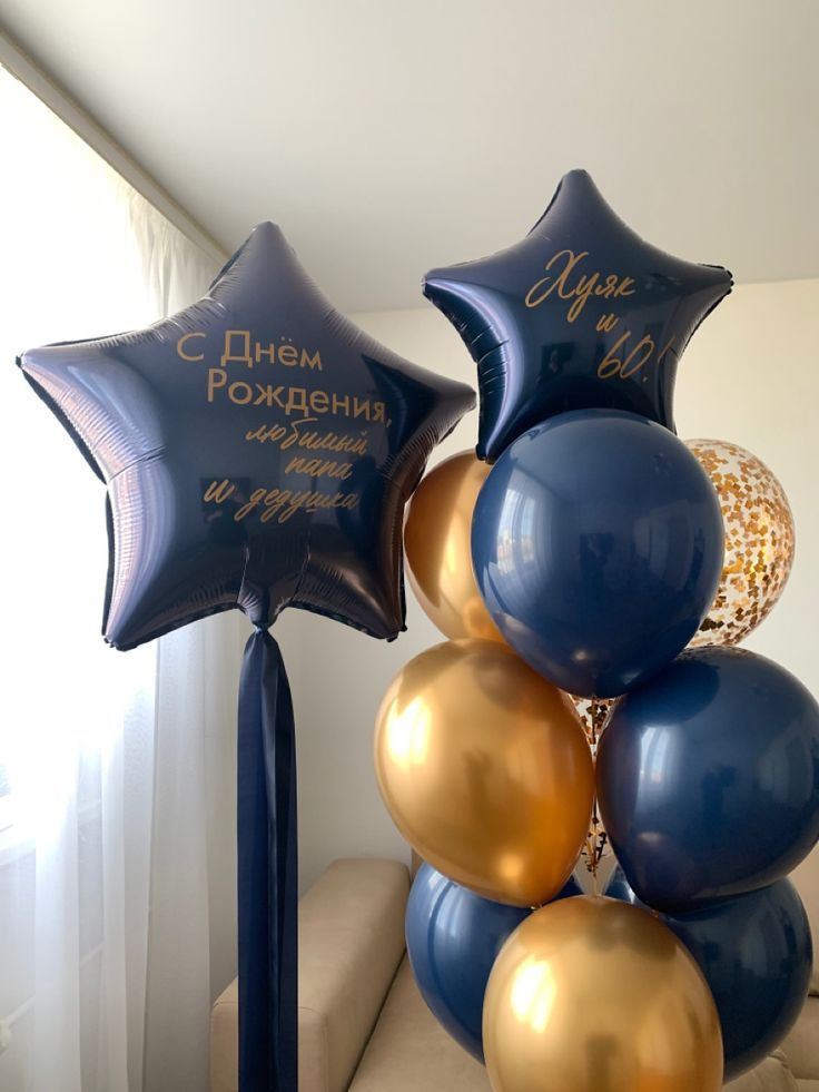 - 9 шаров темно-синие, золотые хром, конфетти