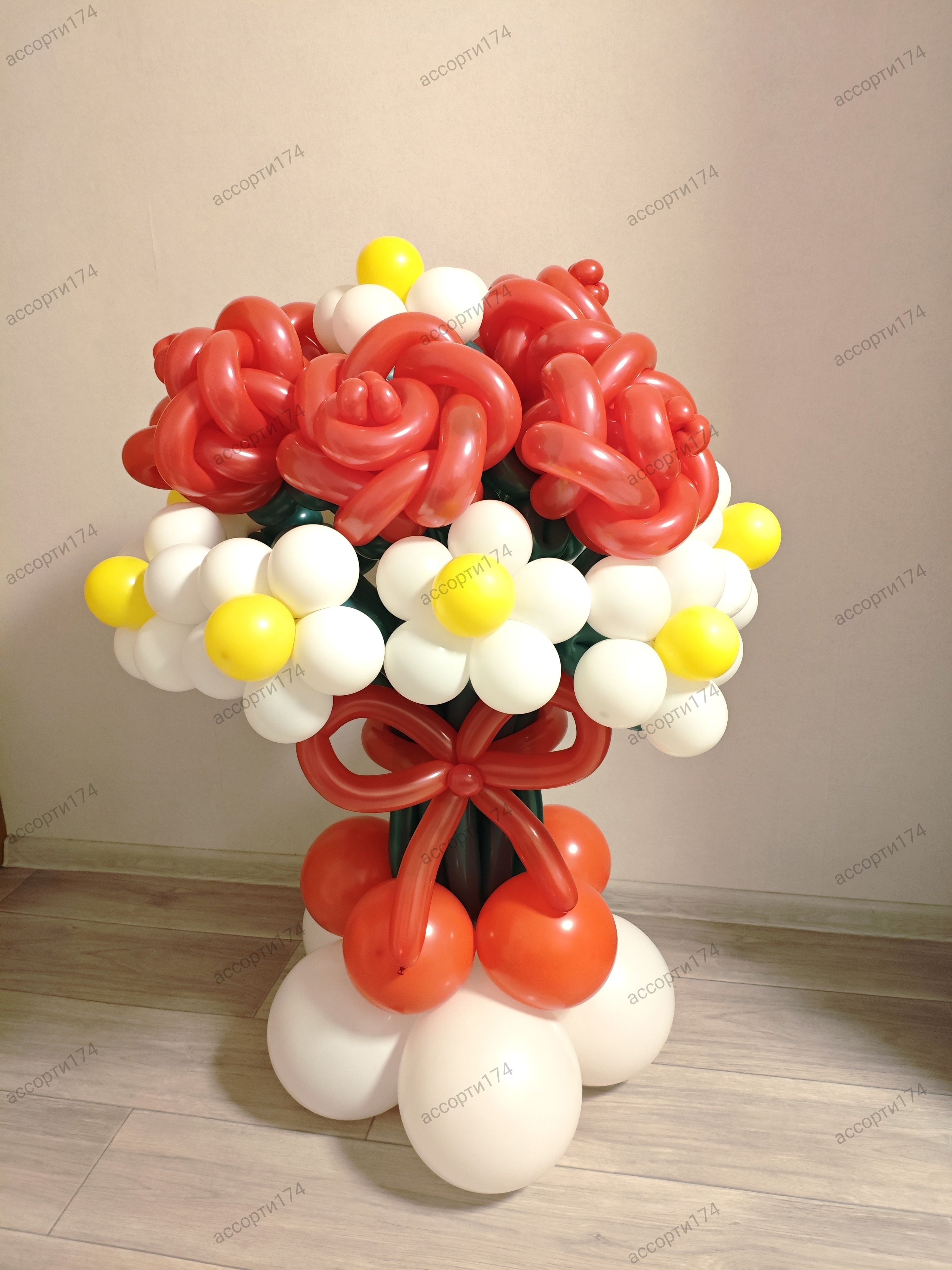 Шикарный Букет на основании с розами и ромашками никого не оставит равнодушным