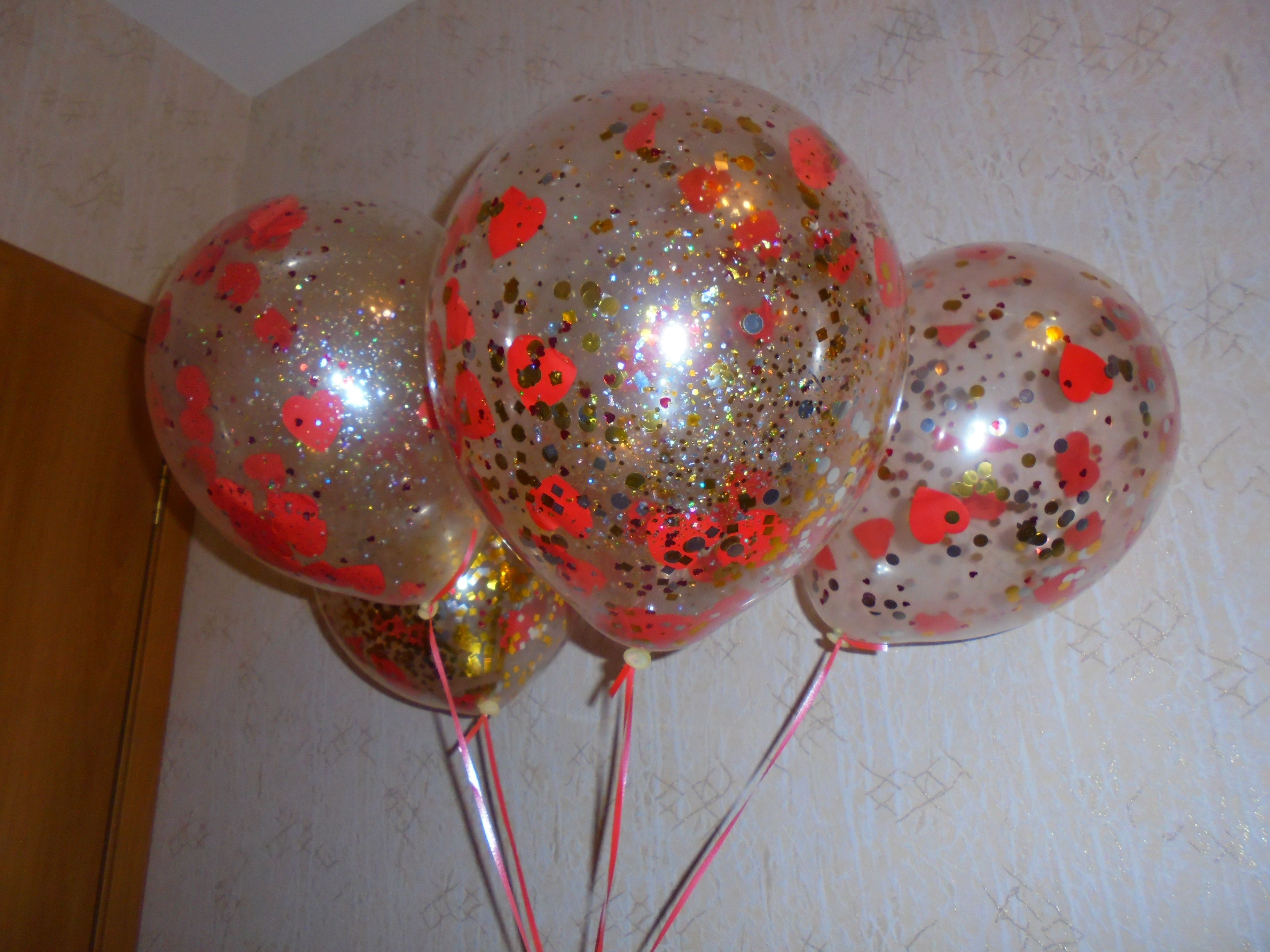 Удивите и порадуйте своих близких необычным дизайном шаров. Цвет и форма наполнения может быть любая: звезды, сердечки, круги, квадратики и т.д.