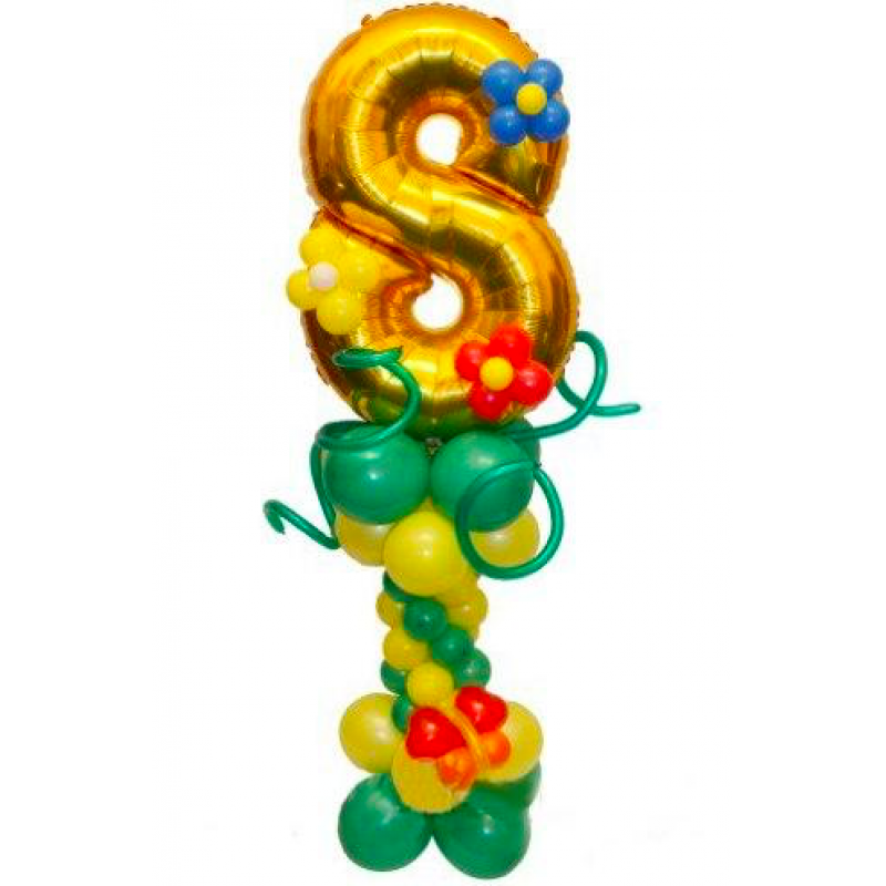Фольгированная цифра золотая на основании с цветами и бабочкой